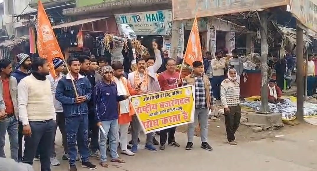बगरैन चौराहे पर बांग्लादेश सरकार का पुतला दहन,हिंदुओं पर कथित अत्याचा...