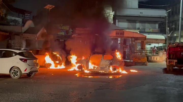 आधी रात को तलोद में दो कारों में आग लग गई  ...