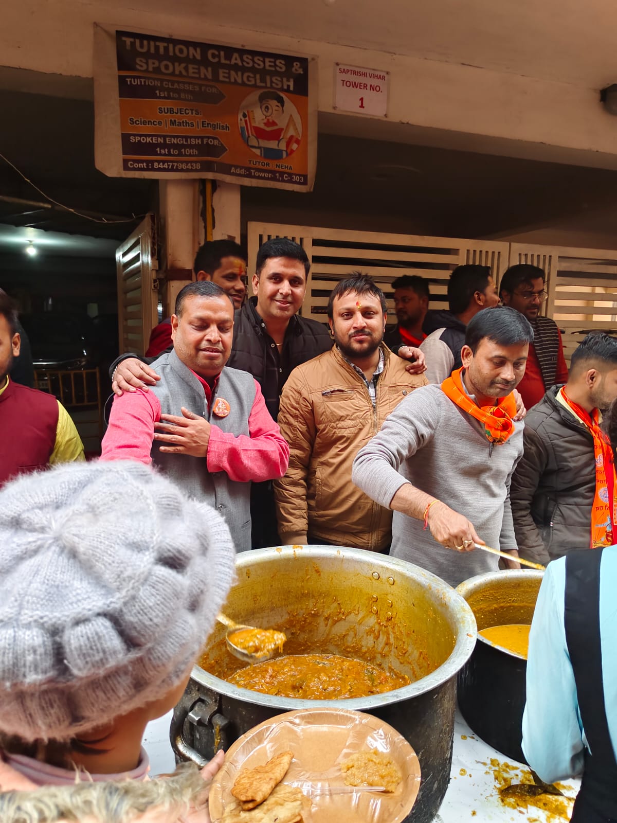 ब्यूरो संवाददाता राजेश मिश्रा की रिपोर्ट:- अयोध्या में भगवान श्री रामजी की प्राण प्रतिष्ठा के अवसर पर, नोएडा सेक्टर 44 के डिफेंस एनक्लेव में 21 एवं 22 जनवरी को विशेष कार्यक्रम रखे गए। जिसमे लगभग 5किलोमीटर की भगवान राम की भव्य शोभा यात्रा,151 कलशों द्वारा कलश यात्रा निकाली गई ,जिसका पूरे यात्रा मार्ग में स्थानीय लोगों द्वारा भरपूर स्वागत किया गया।साथ ही अखंड रामायण पाठ एवं लगातार 24 घंटे का भंडारा जैसे भव्य कार्यक्रम आयोजित किए गए एवं 22 तारीख की शाम को रंगारंग सांस्कृतिक कार्यक्रम में भगवान राम के जीवन पर छोटे छोटे बच्चो द्वारा बनाई गई पेंटिंग के लिए उन्हें परितोषित किया गया,,,उसके बाद भव्य दीपोत्सव एवं आतिशबाजी की गई।इस कार्यक्रम को सफल बनाने में श्री किशोर झा जी, डा.संजीव जी,श्री नरेश मल्होत्रा जी,श्री पंकज वर्मा जी,श्री जय चौहान जी,श्री स्वपन जी,श्री अखंड प्रताप जी,श्री नवनीत पाण्डे जी,,श्री राजेश सिंह जी,श्री विशंभर जी,श्री आनंद जी,श्री विजय कुमार जी,,श्री संजीव सिन्हा जी,श्री अमित जी,श्री अरुणेश कुमार जी,श्री सुनील सिन्हा जी,भाई राजेश गर्ग जी,श्री राकेश मौर्या जी,श्री अमित चौधरी जी,श्री अमित भाटी जी,श्री एन पी सिंह जी,एवं श्रीमति रजनी गोपी जी,,देवांगना जी सहित समस्त सम्माननीय महिला शक्ति द्वारा भरपूर योगदान प्राप्त हुआ