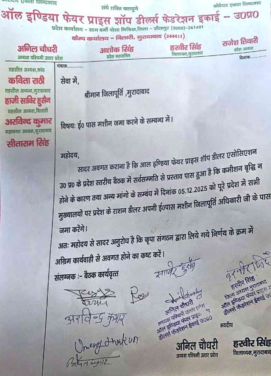 पिछले दो सालों में डीलरों ने सरकार को दर्जनों ज्ञापन सौंपे। कमीशन बढ़ाने, ePOS मशीनों की समस्या दूर करने और अन्य मांगों पर ठोस कदम उठाने की मांग की गई, लेकिन सरकार ने कोई ध्यान नहीं दिया। बिलारी, शाहबाद और जलीलपुर के डीलरों ने कहा, "अब मजबूरी में यह कदम उठाना पड़ा है।"
