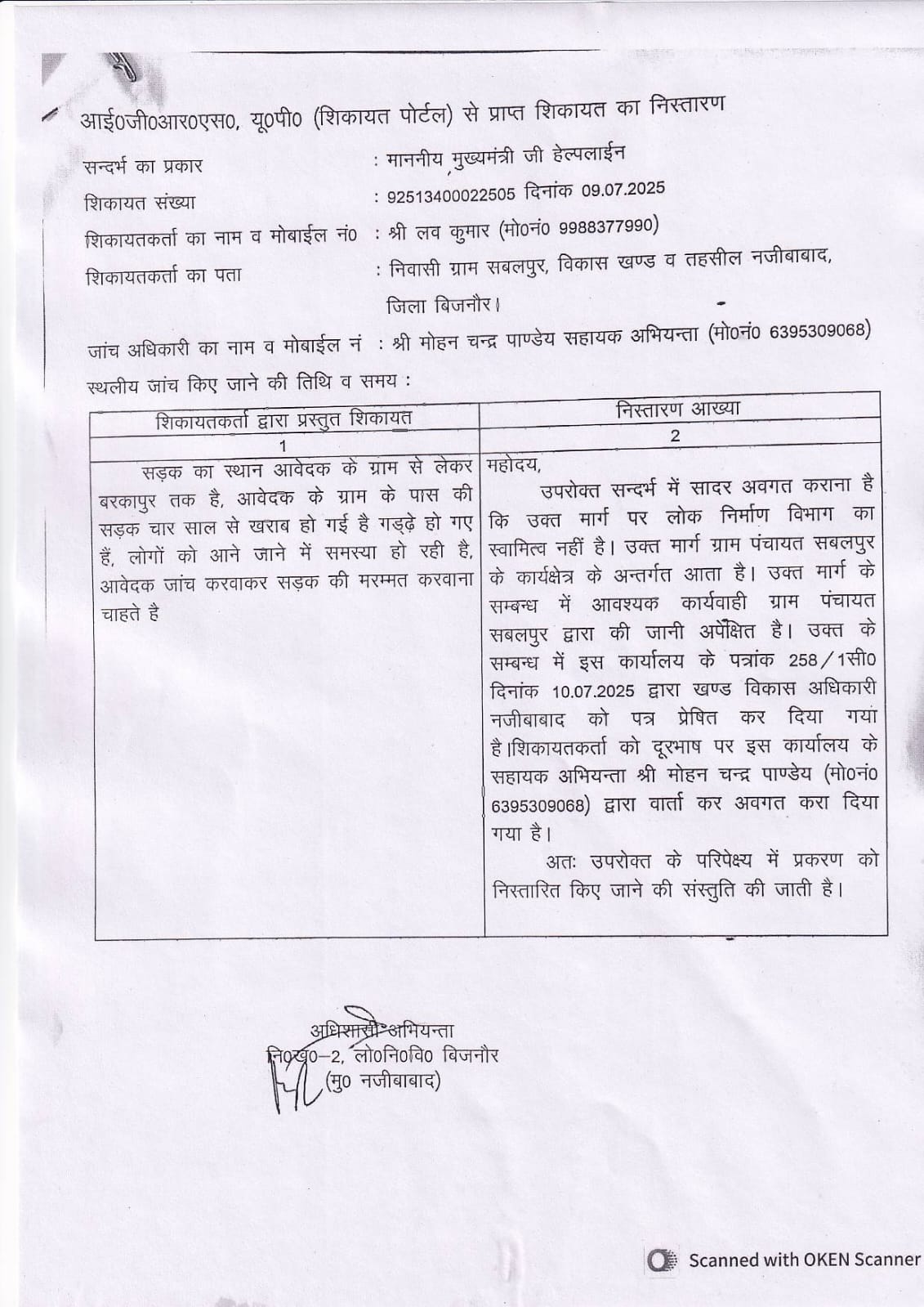 बिजनौर जिले के सबलपुर बीतरा ग्राम की पूर्व दिशा में स्थित सड़क, जो कई आसपास के गांवों को जोड़ती है, कई वर्षों से बुरी तरह क्षतिग्रस्त हो चुकी है। जगह-जगह गड्ढों से भरी यह सड़क बारिश के मौसम में पानी भर जाता है, जिससे ग्रामीणों को आने-जाने में भारी कठिनाई हो रही है। स्थानीय पत्रकार लव कुमार ने मुख्यमंत्री हेल्पलाइन में कई बार शिकायत दर्ज कराई, लेकिन अब तक कोई सुनवाई नहीं हुई।