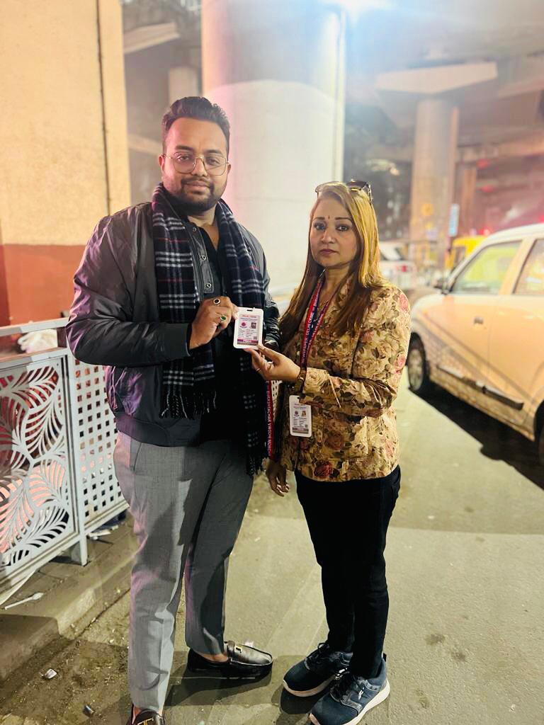 पूनम शर्मा ने शिवम जिंदल जी को मीडिया एसोसिएट का कार्ड पहना कर उनको सम्मानित किया और दिल्ली क्राइम प्रेस के न्यू अपडेट्स के बारे में जानकारी दी।