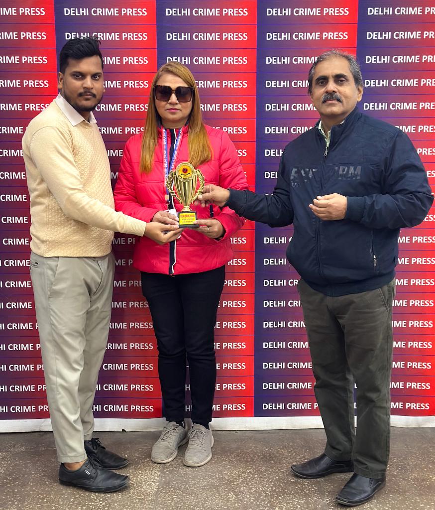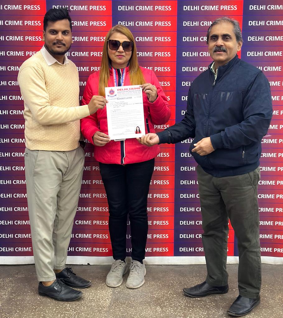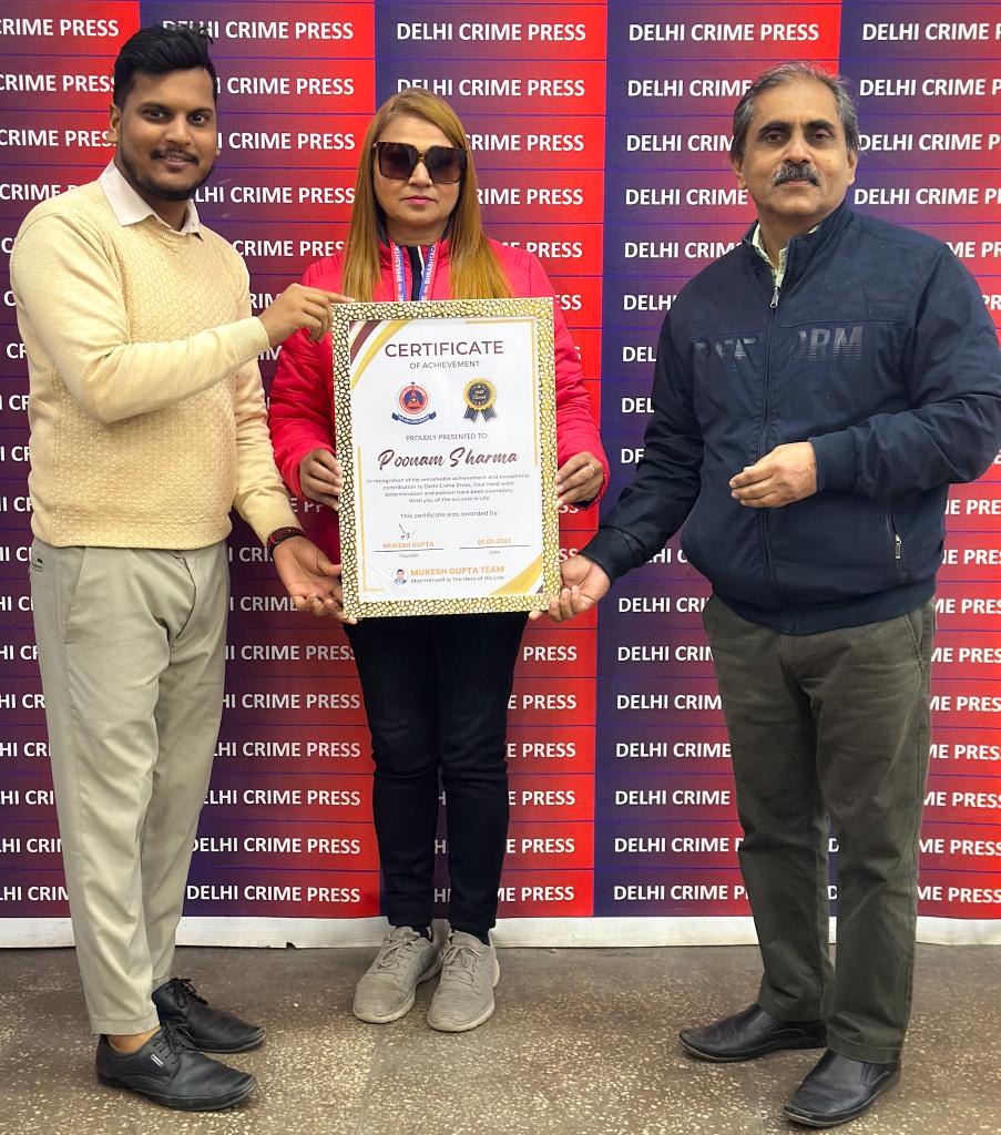 मोहित शुक्ला। दिल्ली क्राइम प्रेस के मुख्यालय में लीडर पूनम शर्मा को ट्रॉफी और सर्टिफिकेट देकर सम्मानित किया गया। पूनम ने xenofin में आईडी लगाकर दिल्ली क्राइम प्रेस में मीडिया एसोसिएट का कार्ड प्राप्त किया है। वह दिल्ली क्राइम प्रेस में भी काफी अच्छा काम कर रही है